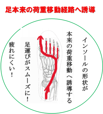 試作を幾度となく繰り返した末にたどり着いたのが、「足裏の動き」と「踵のバランス」をトータルサポートする、他にはない独自のアーチサポートです。